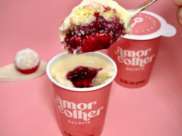 Massa de pão de ló fofinho, molhado com caldad e baunilha, recheado com creme de Ninho e geléia de frutas vermelhas caseira.